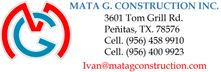Cell. (956) 458 9910 Cell. (956) 400 9923 Ivan@matagconstruction.com